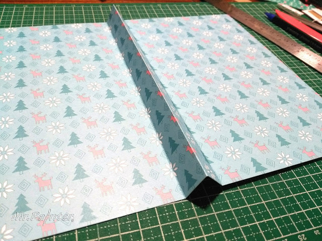 наш лист скрапбумаги со сгибом, "обнимаем" его со стороны сгиба нашим